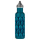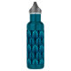Water bottle in a vintage Art Deco wallpaper pattern based on a stylised feather - shades of turquoise / peacock blue on a dark navy / indigo blue background