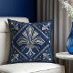 Art Deco Fleur-de-lis Blue marble and Pearl Cushion