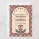 "Announce your big day with this stunning 'Save the Date' card, featuring an intricate Art Nouveau-inspired floral motif and a vintage stained glass pattern. The warm earthy palette of terracotta and dusty rose provides a romantic, retro-modern feel. The background pattern colours are 100% adjustable, allowing you to customise the design to match your unique wedding theme. The back includes a functional QR code so your guests can instantly access your wedding website for travel and RSVP details."