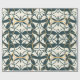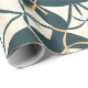 This artwork features an intricate pattern inspired by Art Deco design, chraacterised by flowing, symmetrical lines and geometric shapes. The design is rendered in a refined palette of deep teal, cream, and subtle gold accents, creating a sophisticated and elegant look. The repeating motifs form a complex, interwoven pattern that exudes both harmony and movement. The combination of curves and sharp angles adds a dynamic quality to the design, while the colour scheme maintains a sense of timelessness and classic style.