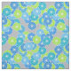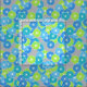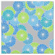 An Art Deco pattern based on a traditional, stylised chrysanthemum pattern used in Japanese textiles, in shades of blue, turquoise and lime green, outlined in white, on a light, silver grey background