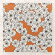 An Art Deco pattern glass coaster based on a traditional, stylised chrysanthemum pattern used in Japanese textiles, in creamy white outlined in black with a rust orange background