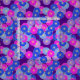 An Art Deco pattern based on a traditional, stylised chrysanthemum pattern used in Japanese textiles, in shades of violet, orchid, lavender, pale and deep blue outlined in gold, on deep, royal purple background