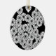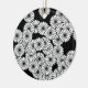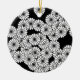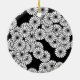 An Art Deco pattern based on a traditional, stylised chrysanthemum pattern used in Japanese textiles, in creamy white outlined in black with a black background round ornament