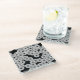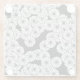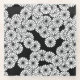 An Art Deco pattern glass coaster based on a traditional, stylised chrysanthemum pattern used in Japanese textiles, in creamy white outlined in black with a black background