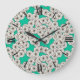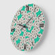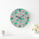 Art Deco flower pattern - white on turquoise Large Clock