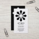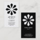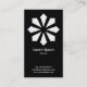 A clear stylish and attractive business card template with a simple but attention grabbing art deco style flower or star symbol. Main company details on the front, with name and personal contact on the back, with the same motif and style.
