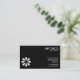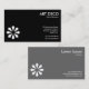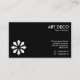 A clear stylish and attractive business card template with a simple but attention grabbing art deco style flower or star symbol. Main company details on the front, with name and personal contact on the back, on a grey background with a white version of the symbol.