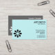 A clear stylish and attractive business card template with a simple but attention grabbing art deco style flower or star symbol. Main company details on the front, with name and personal contact on the back, on a grey background with a white version of the symbol.