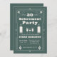 A simple invitation with an art deco frame in white on a green background