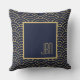 Dark blue and faux golden decorative, Art Deco, Great Gatsby 1920 style throw pillow with semicircles on both sides, designed by Delightful Homes.