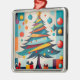 Art Deco Geometric Joyful Christmas Tree with Gift Metal Ornament