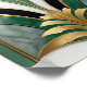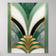 This image showcases a geometric pattern in the Art Deco style. It features a central motif of a stylised plant with golden leaves, surrounded by a series of curved lines and shapes in shades of green, white, and black. The design is framed by a thin gold border, adding a touch of elegance. The overall effect is one of sophistication and timeless beauty, reminiscent of the Art Deco era.