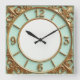 Art Deco Gold and Mint Square Wall Clock
