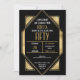 Art Deco Gold Frame 50th Birthday Black Invitation