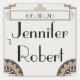 This beautiful and elegant design, called Art Deco Gold Posh Wedding, has a beautiful art nouveau inspired design. The background is cream with a thin gold and black stepped border. In the lower corners there are semi-circle design elements. At the top there is a box for text with filigree designs. Perfect for a 1920s vintage style or garden wedding wedding. Please email me for matching designs and products or with custom requests at noteableexpressions@gmail.com. This set has invitations, save the date cards, response cards, thank you cards, table number tent cards, envelope seals, wine labels, binders, return address labels and many more day-of wedding stationery pieces, favours, and gifts available. Use the envelope seal stickers for any of your DIY gifts - these are available in both large and small sizes! All elements are printed on our high quality products, they do not include any real gold, jewels, embossing, or other textile elements. All designs are copyright Noteable Expressions, Inc. All rights reserved.