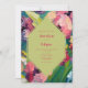 Hot pink text over light green geometric shape with oil painting inspired floral background.