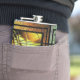 The flask itself is fine. It’s a cheap flask, obviously bought in bulk, however am prepared to overlook that. Given that it is a personalized item, I would have liked to have seen gift boxing instead of the generic packaging. Terrible printing, and/or quality. It’s a cheap, tacky vinyl. It is not cut straight and is also applied in a way that it is overhanging the bottom, causing the glue to catch on items and it will eventually roll and tear, damaging the wrap.