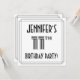 The front of this luxurious eleventh birthday party/celebration invitation card design features a custom name, a fancy art deco style inspired number “11th”, the message “BIRTHDAY PARTY!”, and a border pattern consisting of lines. The back features personalised details about the event, such as the date, time, venue, and any other information that may be useful. Elegant, luxurious, personalised invitations like these might be used to invite attendees/guests to a birthday gathering/party being held in celebration of somebody’s 11th birthday. [~Z0000614]