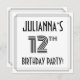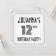 The front of this 1920s-1930s style inspired twelfth birthday celebration/party invitation card design features a custom name, a fancy art deco look inspired number “12th”, the message “BIRTHDAY PARTY!”, and a multi-line border. The back features personalised details about the event, such as the date, time, location/venue, and any other important information. Luxurious, stylish, personalised invitations like these might be used to invite attendees/guests to a birthday gathering/party being held to honour somebody’s 12th birthday. [~Z0000614]