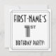 The front of this stylish and 1920s/1930s style inspired first birthday party invitation card design features an editable name, an intricate art deco look inspired number “1st”, the message “BIRTHDAY PARTY!”, and a border pattern consisting of lines. The back features personalised details about the event, such as the date, time, place, and any other information that may be relevant. Luxurious, stylish, customisable invitations like these might be used to invite guests to a birthday party being held to honour somebody’s 1st birthday. [~Z0000614]