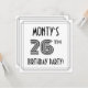 The front of this stylish and Roaring Twenties inspired twenty-sixth birthday party invitation card design features a personalised name, a fancy art deco style inspired number “26th”, the message “BIRTHDAY PARTY!”, and a border pattern consisting of lines. The back features personalised details about the event, such as the date, time, venue/place, and any other information that may be useful. Stylish, elegant, customised invitations like these might be used to invite attendees/guests to a birthday party being held to celebrate somebody’s 26th birthday. [~Z0000614]