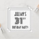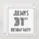 The front of this 1920s-1930s style inspired thirty-first birthday celebration invitation card design features an editable name, an intricate art deco look inspired number “31st”, the message “BIRTHDAY PARTY!”, and a multi-line border. The back features personalised details about the event, such as the date, time, location/venue, and any other information that may be useful. Luxurious, stylish, customisable invitations like these might be used to invite attendees to a birthday gathering being held in celebration of somebody’s 31st birthday. [~Z0000614]