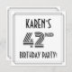 The front of this elegant and 1920s/1930s style inspired forty-second birthday celebration/party invitation card design features a custom name, a fancy art deco style inspired number “42nd”, the message “BIRTHDAY PARTY!”, and a multi-line border. The back features personalised details about the event, such as the date, time, venue/place, and any other information that may be useful. Stylish, elegant, editable invitations like these might be used to invite attendees/guests to a birthday gathering/party being held to celebrate somebody’s 42nd birthday. [~Z0000614]