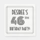 This 1920s/1930s style inspired forty-sixth birthday party/celebration paper napkin design features an editable name, a fancy art deco style inspired number “46th”, the message “BIRTHDAY PARTY!”, and a multi-line border. Paper napkins like these might be used when celebrating somebody’s forty sixth birthday. [~Z0000613]