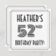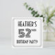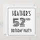 The front of this elegant and 1920s/1930s style inspired fifty-second birthday celebration invitation card design features a personalised name, a fancy art deco look inspired number “52nd”, the message “BIRTHDAY PARTY!”, and a multi-line border. The back features personalised details about the event, such as the date, time, venue/place, and any other information that may be useful. Luxurious, elegant, personalised invitations like these might be used to invite guests to a birthday party/gathering being held in celebration of somebody’s 52nd birthday. [~Z0000614]