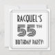 The front of this stylish and 1920s/1930s style inspired fifty-fifth birthday party invitation card design features a customisable name, an intricate art deco style inspired number “55th”, the message “BIRTHDAY PARTY!”, and a border pattern consisting of lines. The back features personalised details about the event, such as the date, time, location, and any other information that may be useful. Luxurious, stylish, customisable invitations like these might be used to invite attendees/guests to a birthday gathering/party being held to celebrate somebody’s 55th birthday. [~Z0000614]