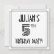 The front of this Roaring Twenties inspired fifth birthday party/celebration invitation card design features an editable name, a fancy art deco style inspired number “5th”, the message “BIRTHDAY PARTY!”, and a multi-line border. The back features personalised details about the event, such as the date, time, venue/place, and any other information that may be important. Stylish, elegant, personalised invitations like these might be used to invite guests/attendees to a birthday party/gathering being held to honour somebody’s 5th birthday. [~Z0000614]