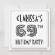 The front of this stylish and 1920s/1930s style inspired sixty-ninth birthday party invitation card design features a personalised name, a fancy art deco look inspired number “69th”, the message “BIRTHDAY PARTY!”, and a multi-line border. The back features personalised details about the event, such as the date, time, place/venue, and any other information that may be important. Elegant, stylish, customised invitations like these might be used to invite attendees to a birthday party/gathering being held to celebrate somebody’s 69th birthday. [~Z0000614]