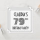 The front of this stylish and 1920s/1930s style inspired seventy-ninth birthday celebration/party invitation card design features a custom name, a fancy art deco style inspired number “79th”, the message “BIRTHDAY PARTY!”, and a border pattern consisting of lines. The back features personalised details about the event, such as the date, time, location, and any other important information. Elegant, stylish, personalised invitations like these might be used to invite attendees to a birthday party being held to honour somebody’s 79th birthday. [~Z0000614]