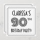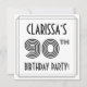 The front of this 1920s-1930s style inspired ninetieth birthday celebration invitation card design features an editable name, an intricate art deco style inspired number “90th”, the message “BIRTHDAY PARTY!”, and a multi-line border. The back features personalised details about the event, such as the date, time, place, and any other information that may be important. Stylish, luxurious, customised invitations like these might be used to invite guests/attendees to a birthday party/gathering being held to celebrate somebody’s 90th birthday. [~Z0000614]