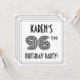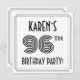 The front of this elegant and 1920s/1930s style inspired ninety-sixth birthday party invitation card design features a personalised name, a fancy art deco style inspired number “96th”, the message “BIRTHDAY PARTY!”, and a multi-line border. The back features personalised details about the event, such as the date, time, location, and any other important information. Stylish, elegant, customisable invitations like these might be used to invite guests/attendees to a birthday party being held to celebrate somebody’s 96th birthday. [~Z0000614]