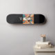 This chic Art Deco inspired skateboard features a picture of an elegant lady. The colours include blue, orange, purple and yellow, juxtaposed with a geometric feel for a vibrant effect. Personalise the skateboard with your initials below the picture. An ideal gift for the lover of retro style and skateboarding.