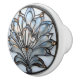 Gorgeous Art Deco image of an elegant iridescent look glass with metallic, soder border and amber bead accents. Beautiful, intricately detailed Art Deco ceramic pull to dress up any furniture piece, or cabinet.