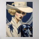 Art Deco Lady in White with Black Dog, Gatsby Era Poster