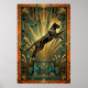 Capturing the power of movement, this black cat leaps across a backdrop of golden geometry and teal marble. The dynamic lines and 1920s sunburst motifs create a sense of motion and luxury, ideal for adding energy to a stylish living room or office.