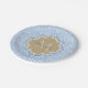 Art Deco Light Blue Fish Scales Tan Monogram Name Paper Plate