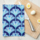 Art Deco Lily, Cobalt Blue, Aqua and White Tea Towel