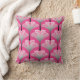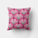 Throw pillow in a reproduction of a stylised, Art Deco lily, wallpaper pattern - a gradient of light silver grey / grey to dark graphite on a deep fuchsia pink background, accented with lighter pink