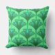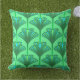 Art Deco Lily, Jade Green and Turquoise Cushion