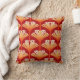 Throw pillow in a reproduction of a stylised, Art Deco lily, wallpaper pattern - a gradient of deep flame orange to white, accented with mustard gold, on a deep tangerine orange background