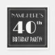 This elegant fortieth birthday party/celebration paper napkin design features an editable name, an intricate art deco style inspired number “40th”, the message “BIRTHDAY PARTY!”, and a multi-line border. It has a black-coloured background by default, but it can be customised to a different colour, if desired. Birthday themed paper napkins like these might be used at a birthday party celebrating somebody’s fortieth birthday. [~Z0000612]