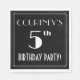 This 1920s-1930s style inspired fifth birthday party paper napkin design features a customisable name, an intricate art deco look inspired number “5th”, the message “BIRTHDAY PARTY!”, and a multi-line border. The background is coloured black by default, but it can be customised to a different colour, if desired. Paper napkins like these might be used at a birthday party for somebody who is celebrating their 5th birthday. [~Z0000612]