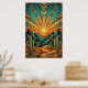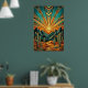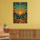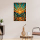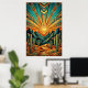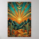 Transform your home with the towering elegance of the American Southwest. This "Majestic Mesa" poster reimagines a classic desert sunrise through the lens of high Art Deco glamour. Featuring sharp, angular mountain peaks, stylized saguaro cacti, and a breathtaking sunburst that fills the sky with rhythmic geometric patterns. The sophisticated color story of deep teal, sun-baked terracotta, and shimmering metallic gold outlines creates a timeless piece of modern Western art.