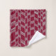 This towel set has an art deco design of vertical lines connected by diagonal lines in grey on a field of maroon.