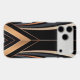 This abstract Art Deco design exudes luxury and sophistication with its sweeping metallic arcs in gold, copper, and grey against a deep black background. Symmetrical curves converge towards a central focal point, framed by sharp angular lines and vertical patterns, evoking glamour and retro elegance. Perfect for elevating home decor, office art, and stylish accessories with a timeless, opulent aesthetic.